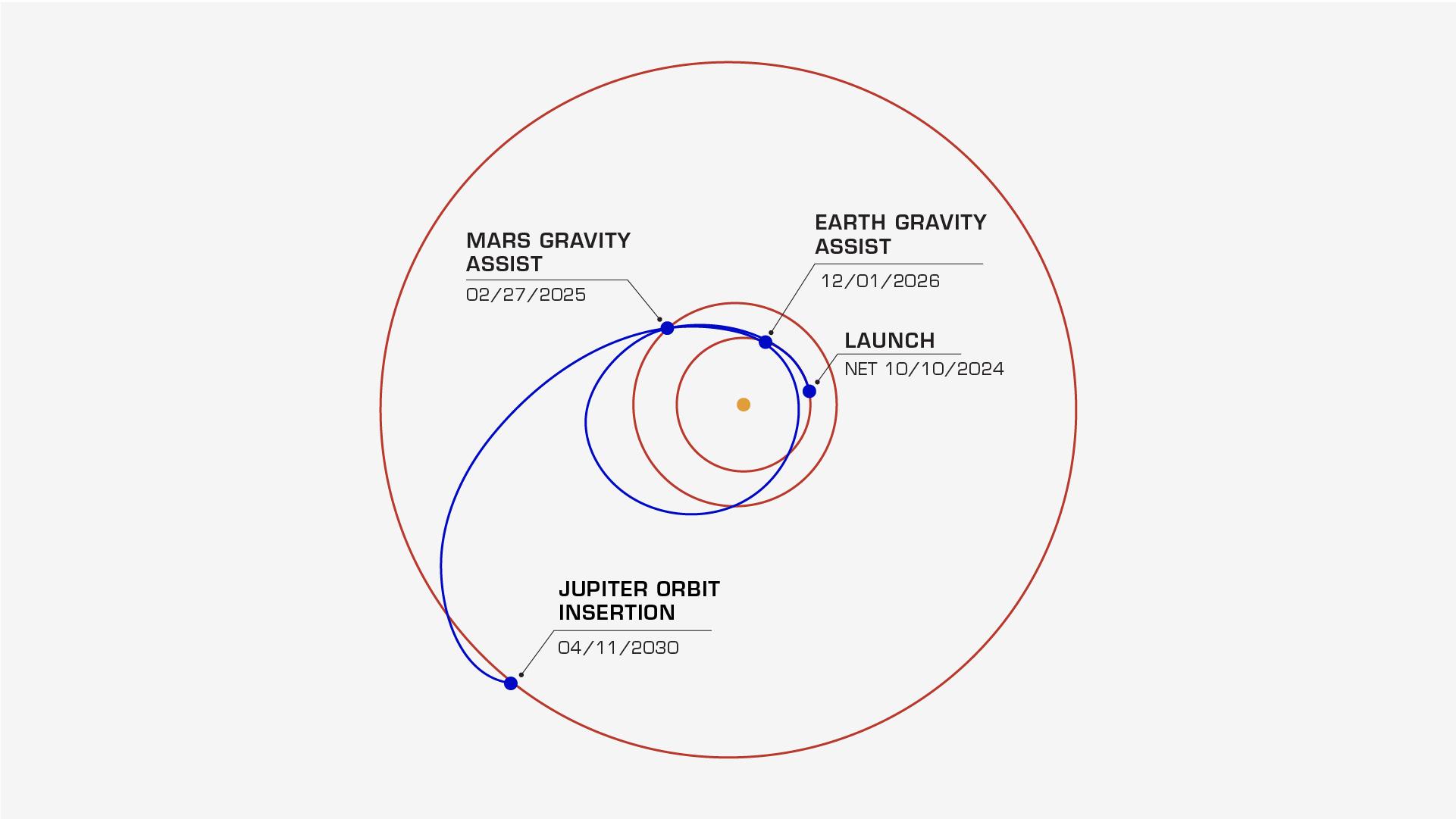 유로파 클리퍼 임무는 2024년 10월에 발사될 예정이며, 목성의 위성 유로파를 탐사하기 위한 장대한 여정에 오릅니다. 이 임무는 약 5.5년의 시간이 소요되어 2030년에 유로파 궤도에 도착하게 됩니다. 최신 계획에 따르면, 유로파 클리퍼는 다음과 같은 여정을 따르게 됩니다.